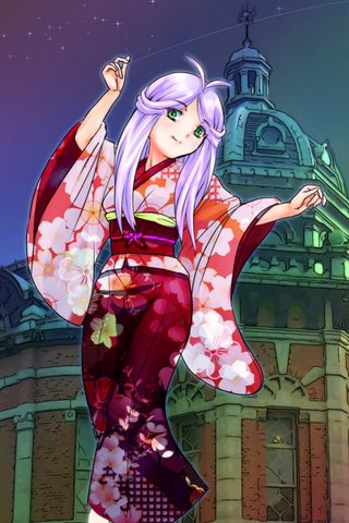 320x480 девушка, улыбка, кимоно, танец, аниме обои samsung galaxy ace gt-s5830, sony xperia e, miro, htc wildfire s, c, lg optimus