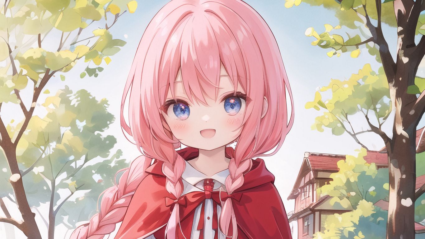 1366x768 девушка, улыбка, косички, корзина, аниме, арт обои планшет, ноутбук