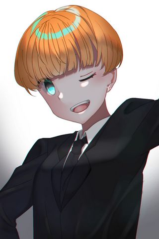 320x480 девушка, улыбка, костюм, галстук, аниме обои samsung galaxy ace gt-s5830, sony xperia e, miro, htc wildfire s, c, lg optimus