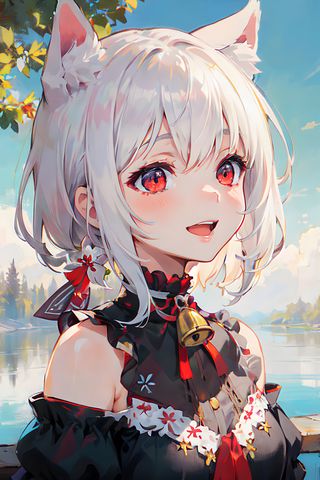 320x480 девушка, улыбка, неко, колокольчик, река, аниме обои samsung galaxy ace gt-s5830, sony xperia e, miro, htc wildfire s, c, lg optimus
