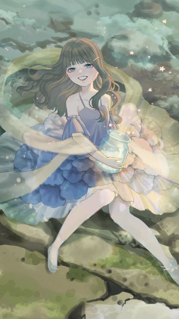 360x640 девушка, улыбка, платье, банка, звезды, аниме, арт обои nokia n8, c5, c6, c7, e7, x6 nokia 5800, 5230, 5228, sony ericsson vivaz