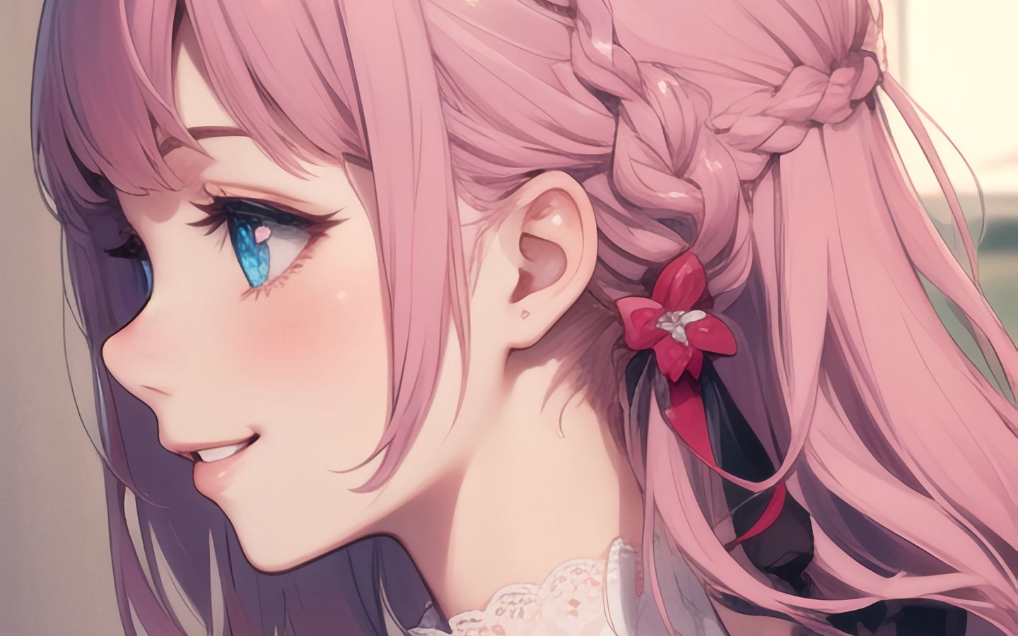 1440x900 девушка, улыбка, профиль, аниме, арт обои 16:10