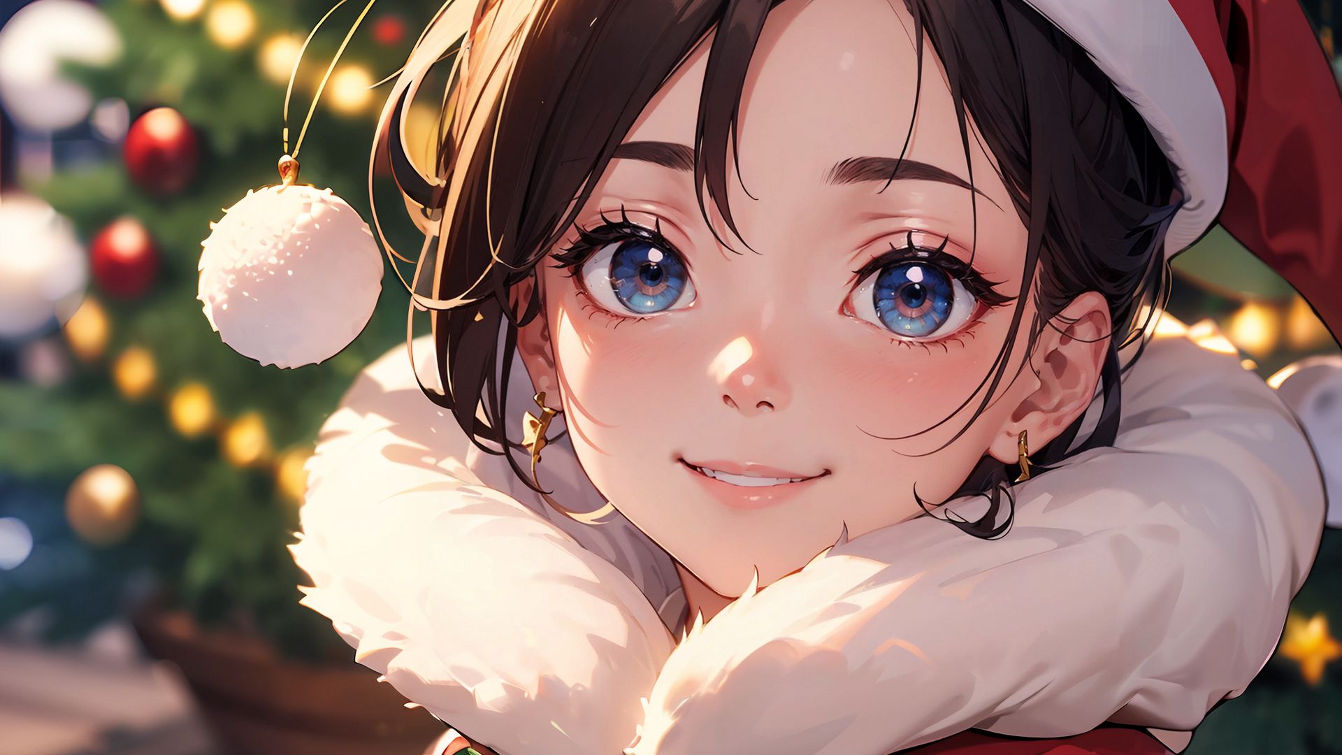 1920x1080 девушка, улыбка, шапка, аниме, арт, санта-клаус обои full hd, hdtv, fhd, 1080p