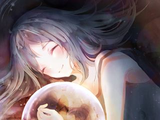 320x240 девушка, улыбка, шар, воспоминание, аниме, арт обои nokia e72, e71, asha, alcatel onetouch