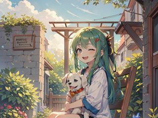 320x240 девушка, улыбка, щенок, арт, аниме обои nokia e72, e71, asha, alcatel onetouch