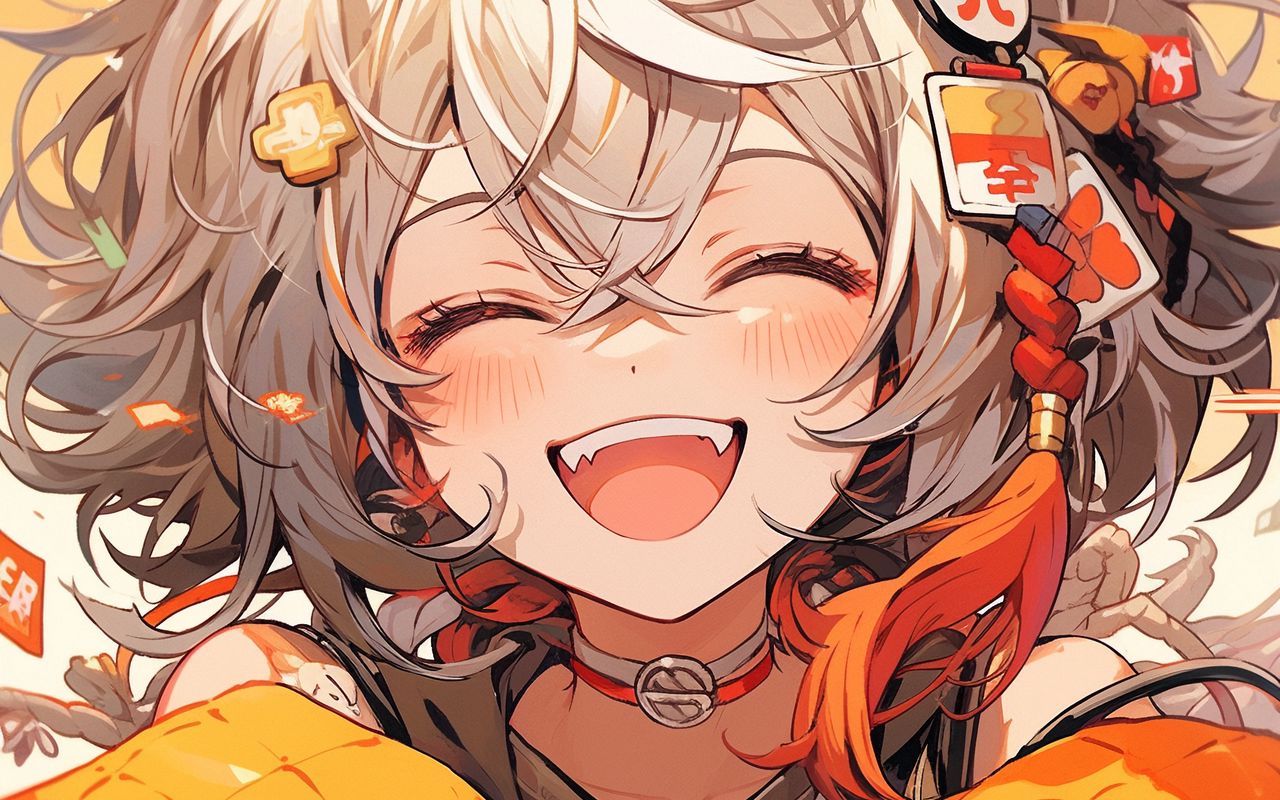 1280x800 девушка, улыбка, вампир, заколки, аниме обои 16:10