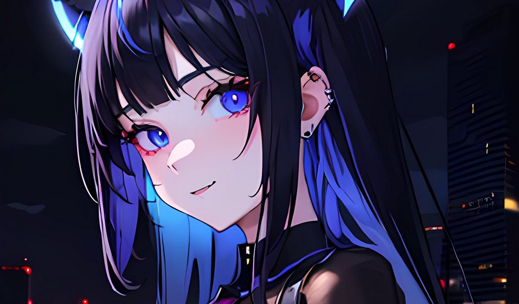 1024x600 девушка, ушки, пирсинг, синий, аниме обои нетбук, планшет