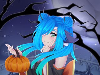 320x240 девушка, вампир, тыквы, хеллоуин, аниме, арт обои nokia e72, e71, asha, alcatel onetouch