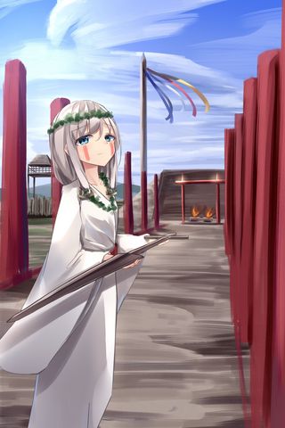 320x480 девушка, венок, меч, аниме, арт обои samsung galaxy ace gt-s5830, sony xperia e, miro, htc wildfire s, c, lg optimus