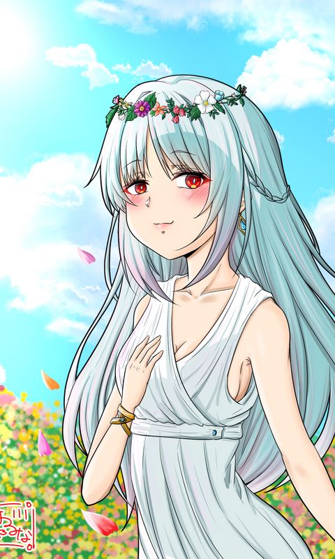480x800 девушка, венок, поле, аниме, арт обои nokia x, x2, xl, 520, 620, 820, samsung galaxy star, ace, asus zenfone 4