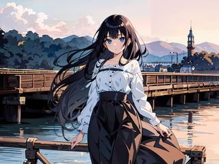 320x240 девушка, ветер, пирс, аниме, море обои nokia e72, e71, asha, alcatel onetouch