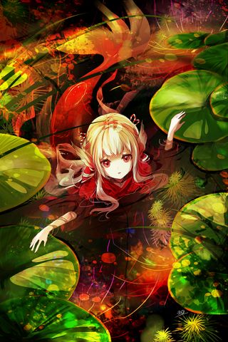 320x480 девушка, вода, листья, фэнтези, аниме, арт обои samsung galaxy ace gt-s5830, sony xperia e, miro, htc wildfire s, c, lg optimus