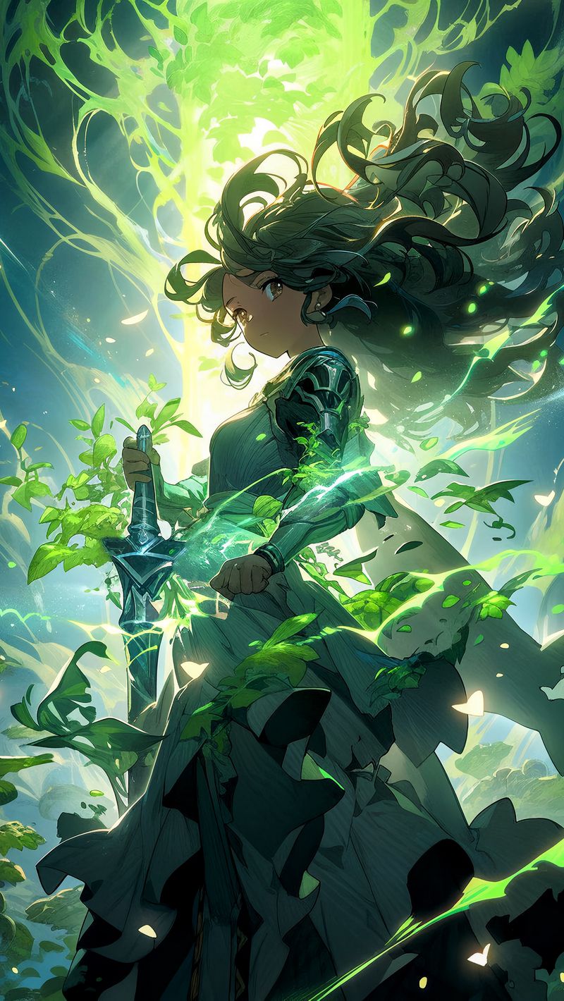 800x1420 девушка, воин, меч, волосы, зеленый, аниме обои iphone se/5s/5c/5 for parallax