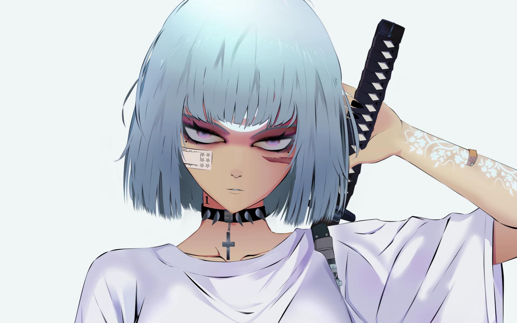 1680x1050 девушка, взгляд, катана, меч, воин, аниме обои 16:10
