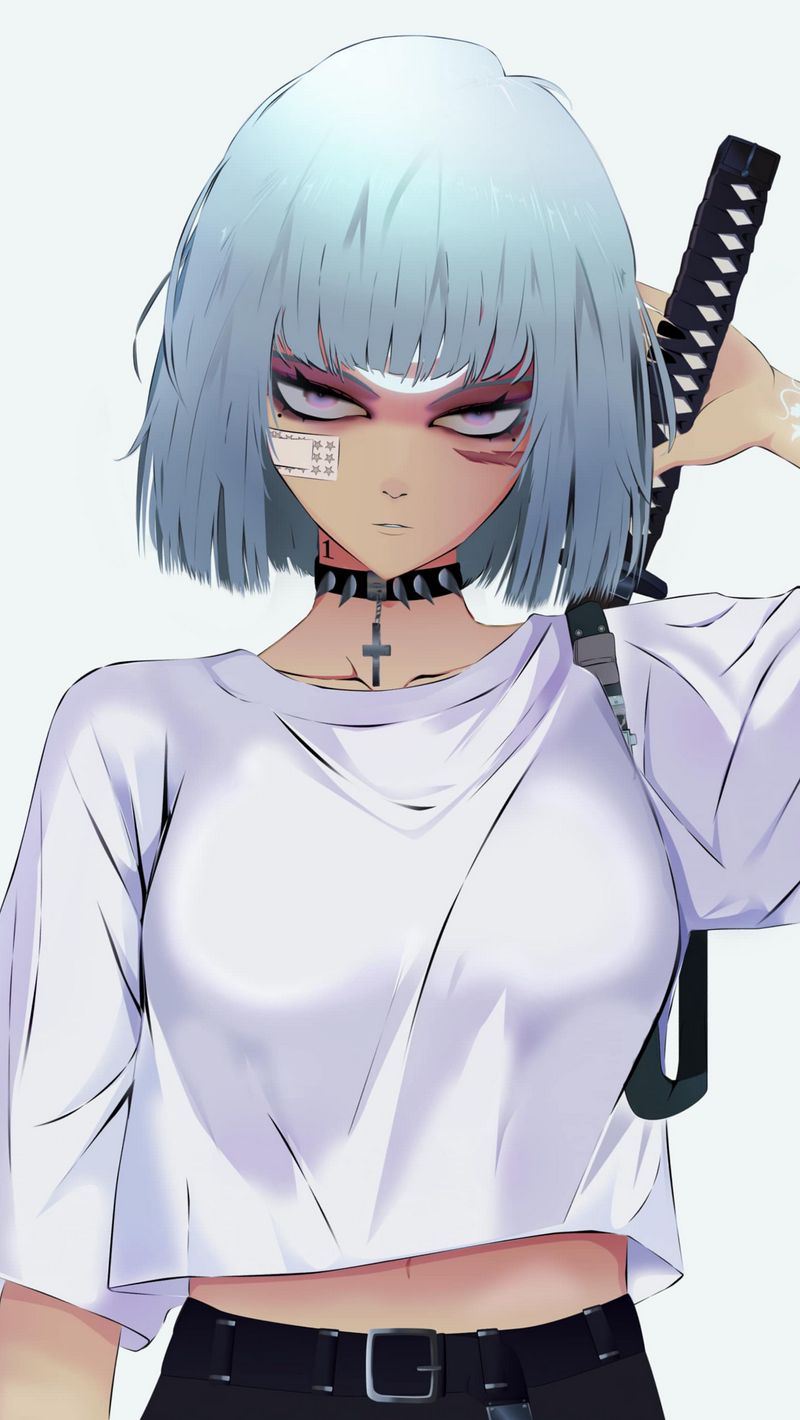 800x1420 девушка, взгляд, катана, меч, воин, аниме обои iphone se/5s/5c/5 for parallax