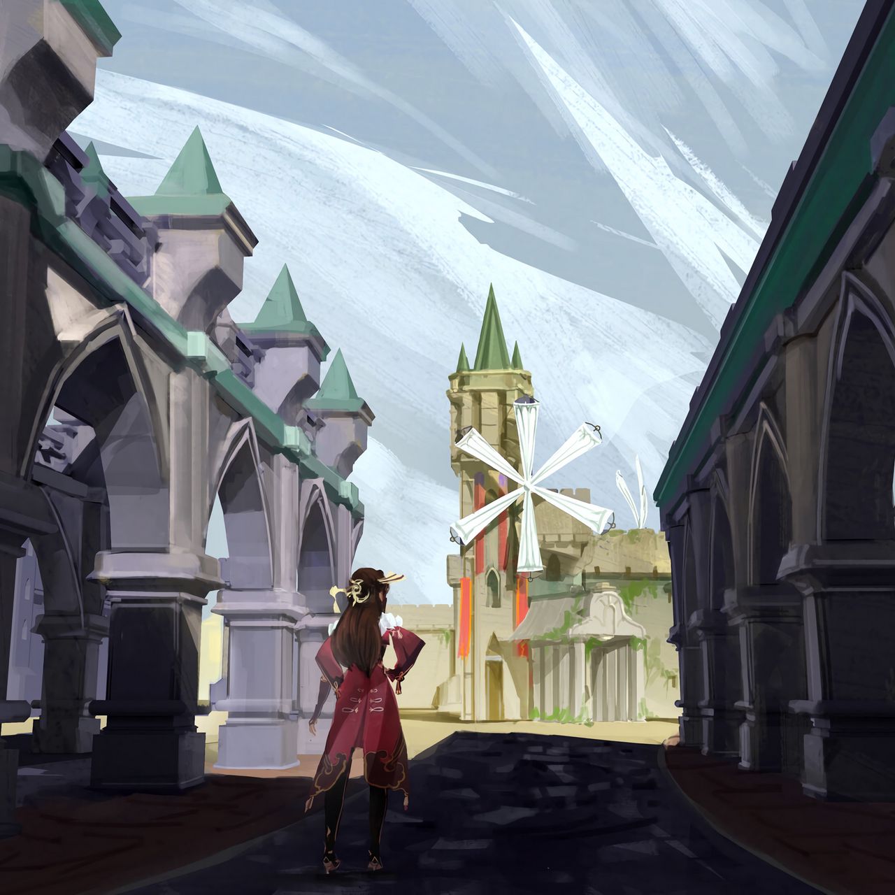 1280x1280 девушка, замок, средневековье, арт обои ipad, ipad 2, ipad mini for parallax