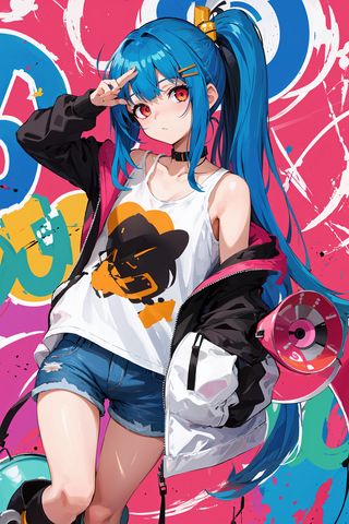 320x480 девушка, жест, шорты, граффити, аниме, арт обои samsung galaxy ace gt-s5830, sony xperia e, miro, htc wildfire s, c, lg optimus