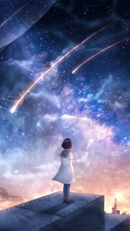 540x960 девушка, звездопад, космос обои samsung galaxy s4 mini, microsoft lumia 535, philips xenium, lg l90, htc sensation