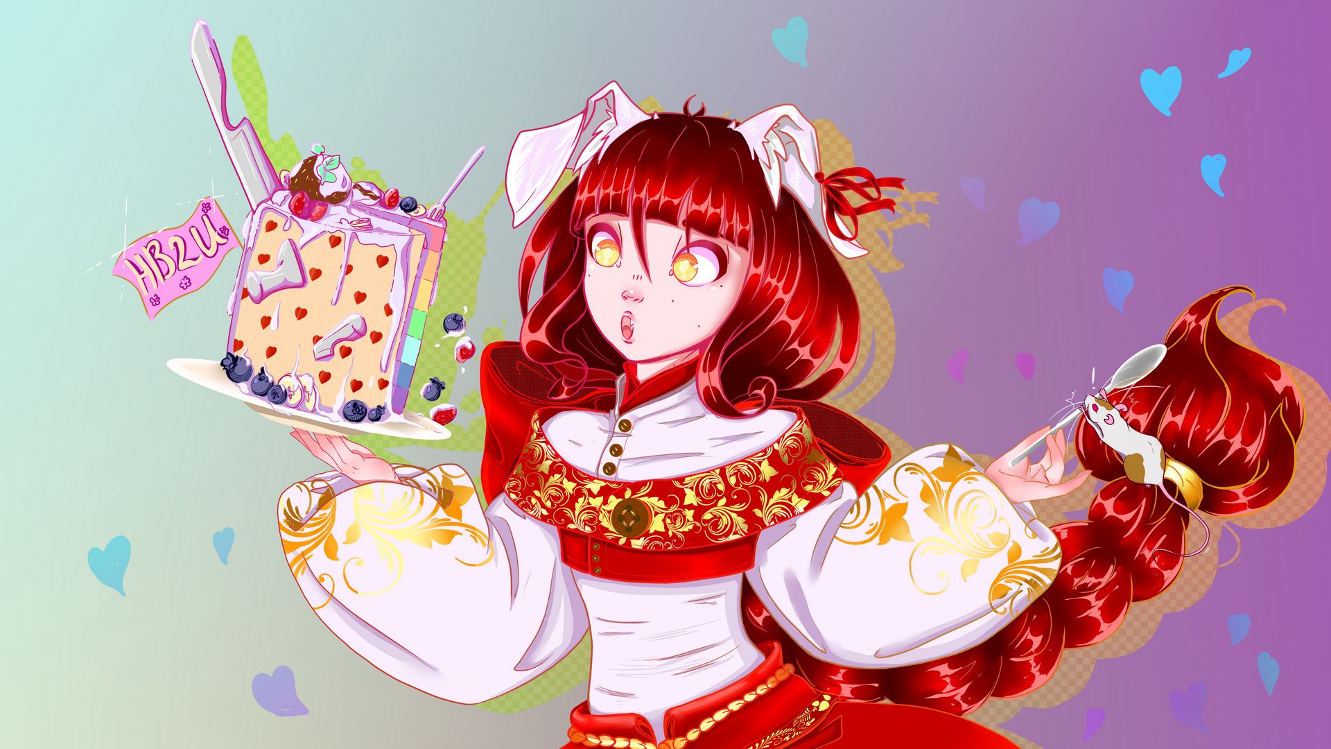 1920x1080 девушка-собака, девушка, торт, кошка, аниме, арт обои full hd, hdtv, fhd, 1080p