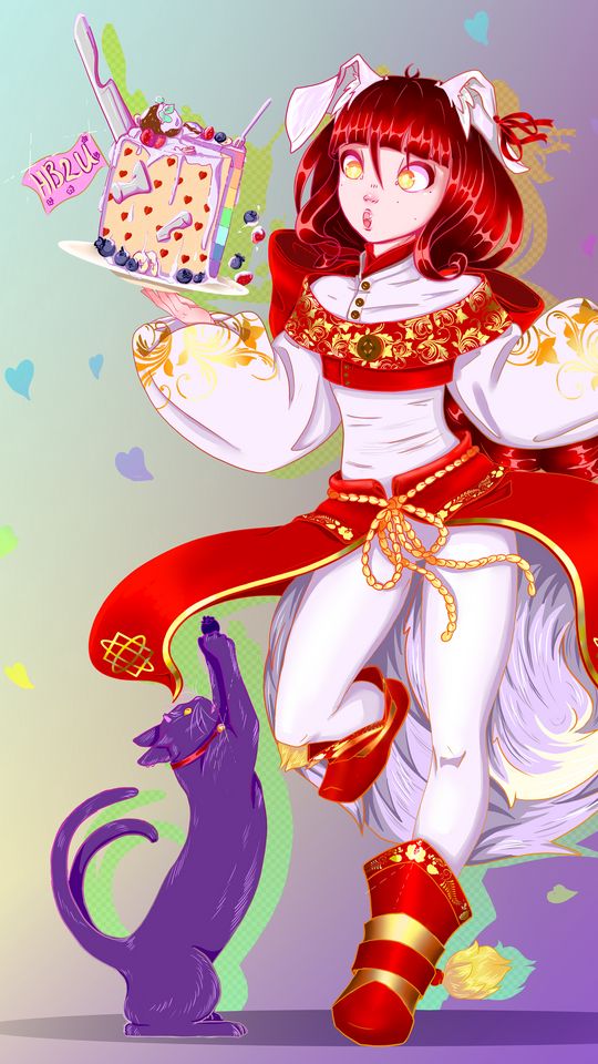 540x960 девушка-собака, девушка, торт, кошка, аниме, арт обои samsung galaxy s4 mini, microsoft lumia 535, philips xenium, lg l90, htc sensation