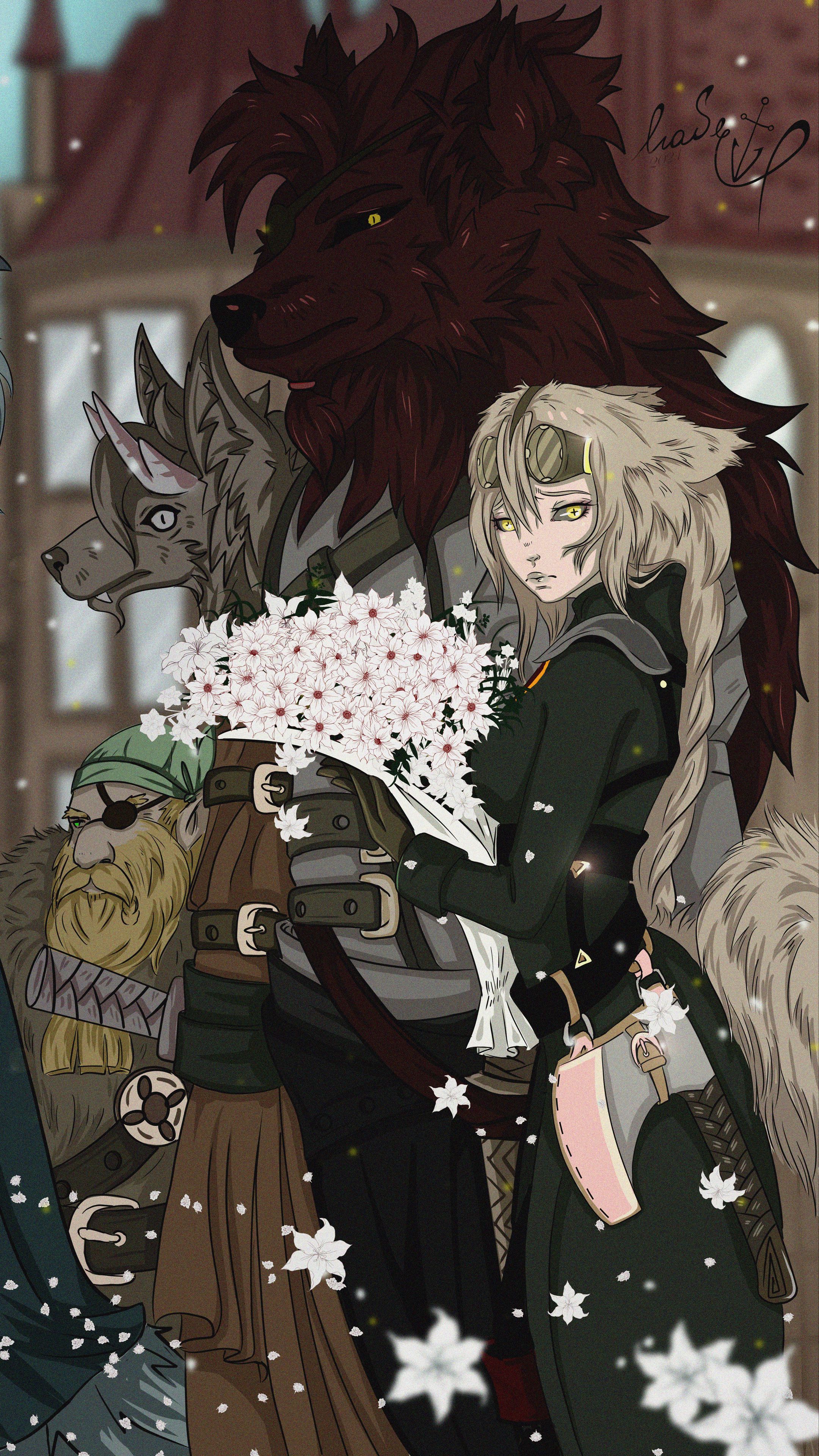 2160x3840 девушка-собака, девушка, цветы, оборотень, аниме, арт обои samsung galaxy s4, s5, note, sony xperia z, z1, z2, z3, htc one, lenovo vibe