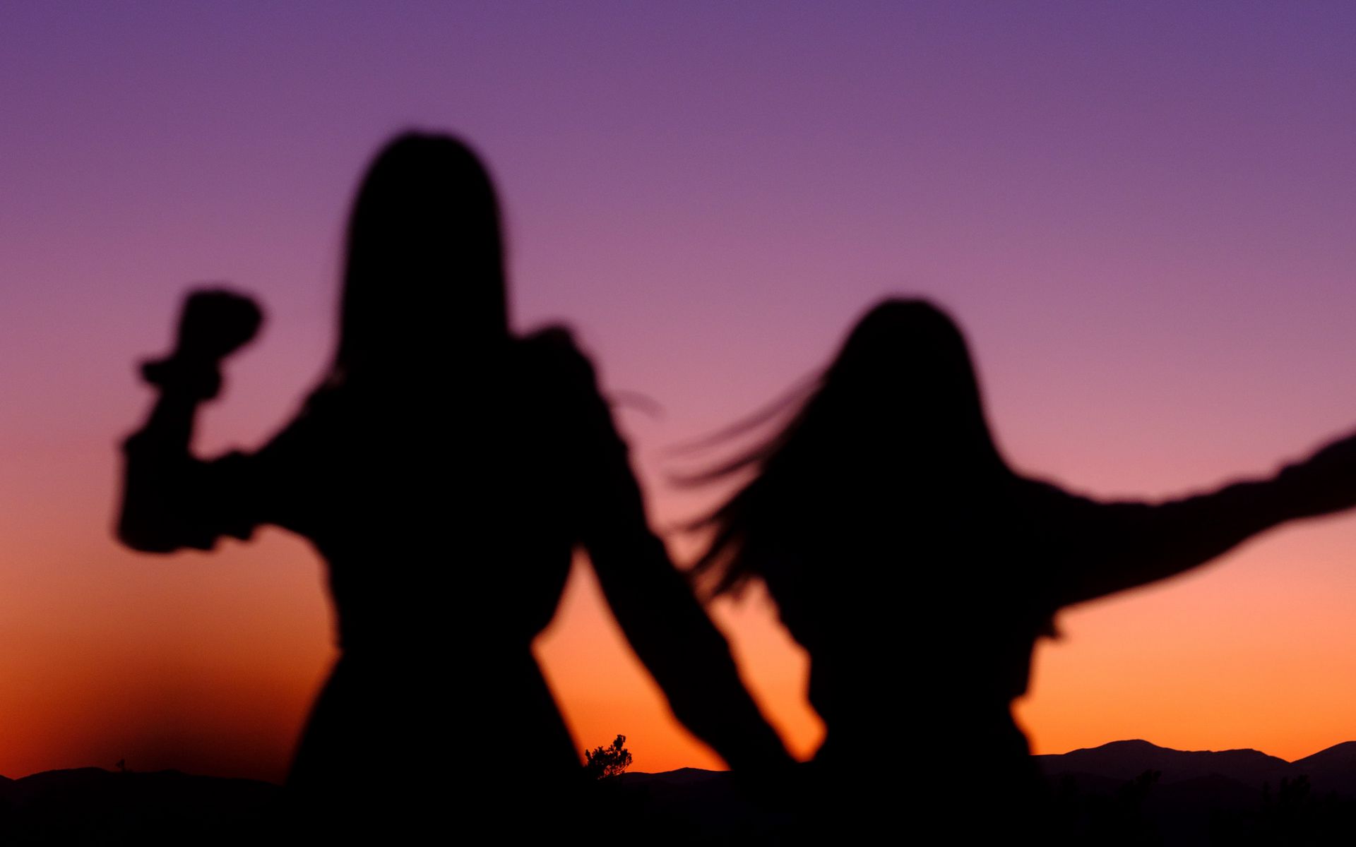 1920x1200 девушки, силуэты, танец, сумерки, темный обои 16:10