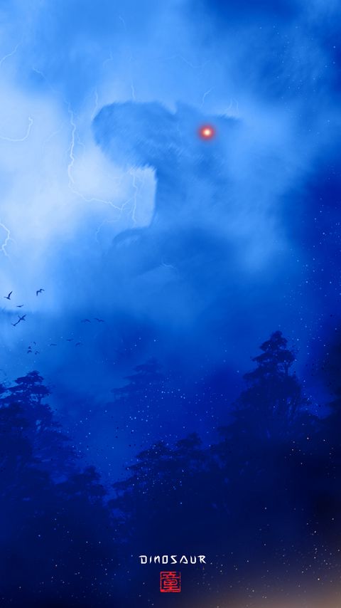480x854 динозавр, монстр, силуэт, арт, туман, молнии обои nokia lumia 630, sony ericsson xperia