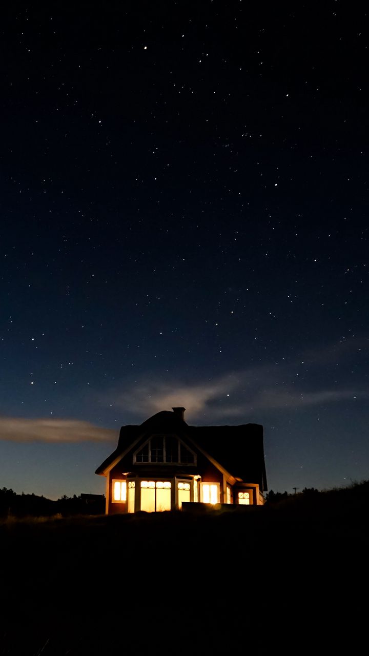 720x1280 дом, ночь, свет, звездное небо, уют, спокойствие обои samsung galaxy mini s3, s5, neo, alpha, sony xperia compact z1, z2, z3, asus zenfone