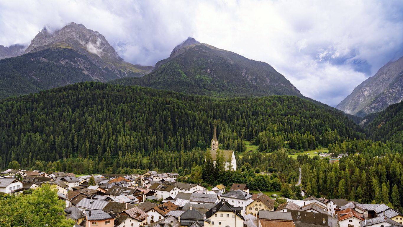 1366x768 дома, деревья, лес, горы, холмы, вид обои планшет, ноутбук
