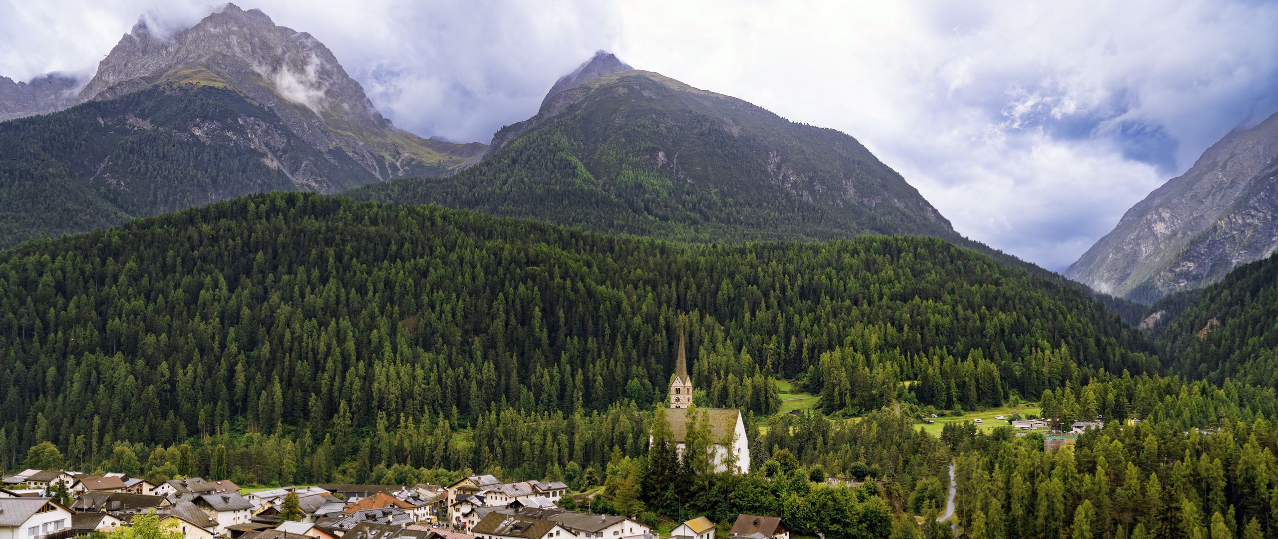 2560x1080 дома, деревья, лес, горы, холмы, вид обои два монитора 1080p
