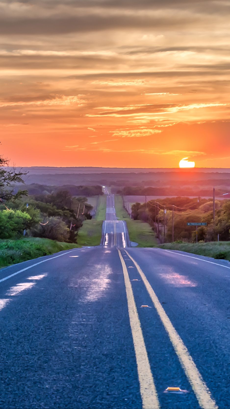 938x1668 дорога, деревья, горизонт, закат обои iphone 8/7/6s/6 for parallax