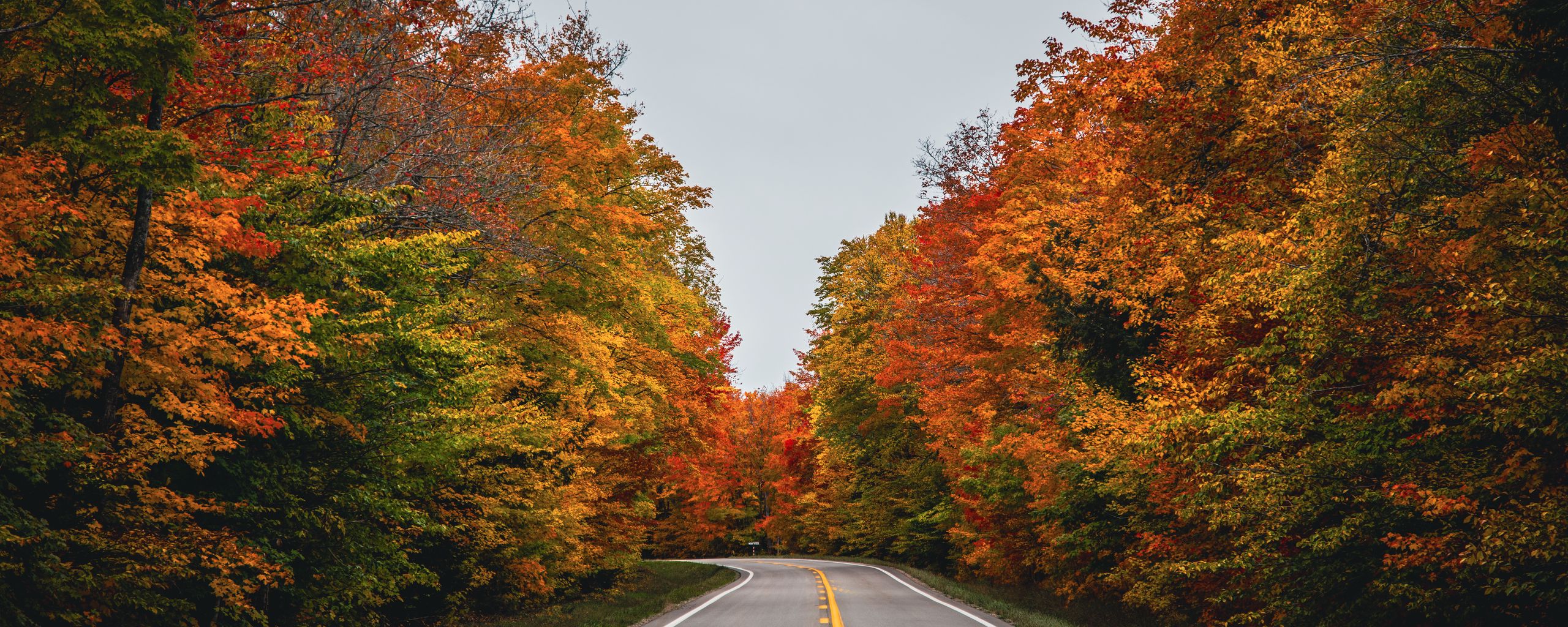 2560x1024 дорога, осень, деревья, природа обои ультраширокий монитор