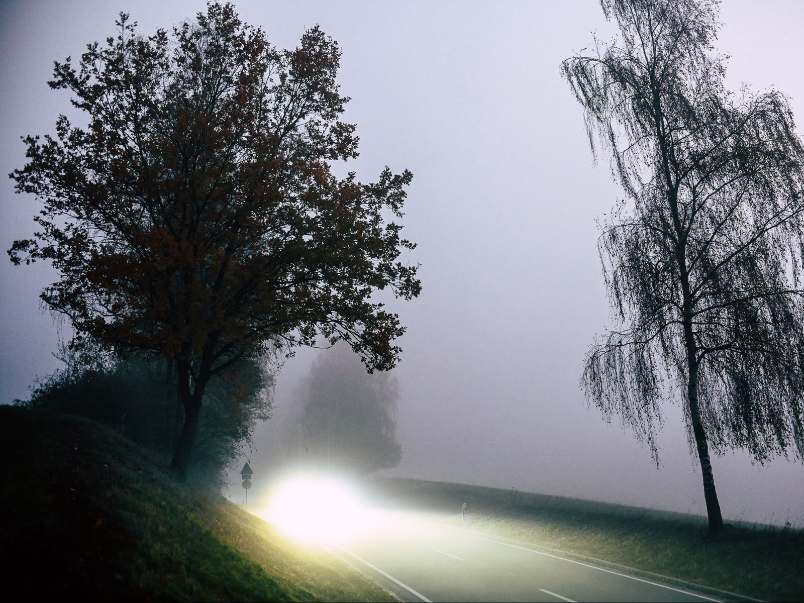 1600x1200 дорога, свет, туман, деревья обои стандарт 4:3