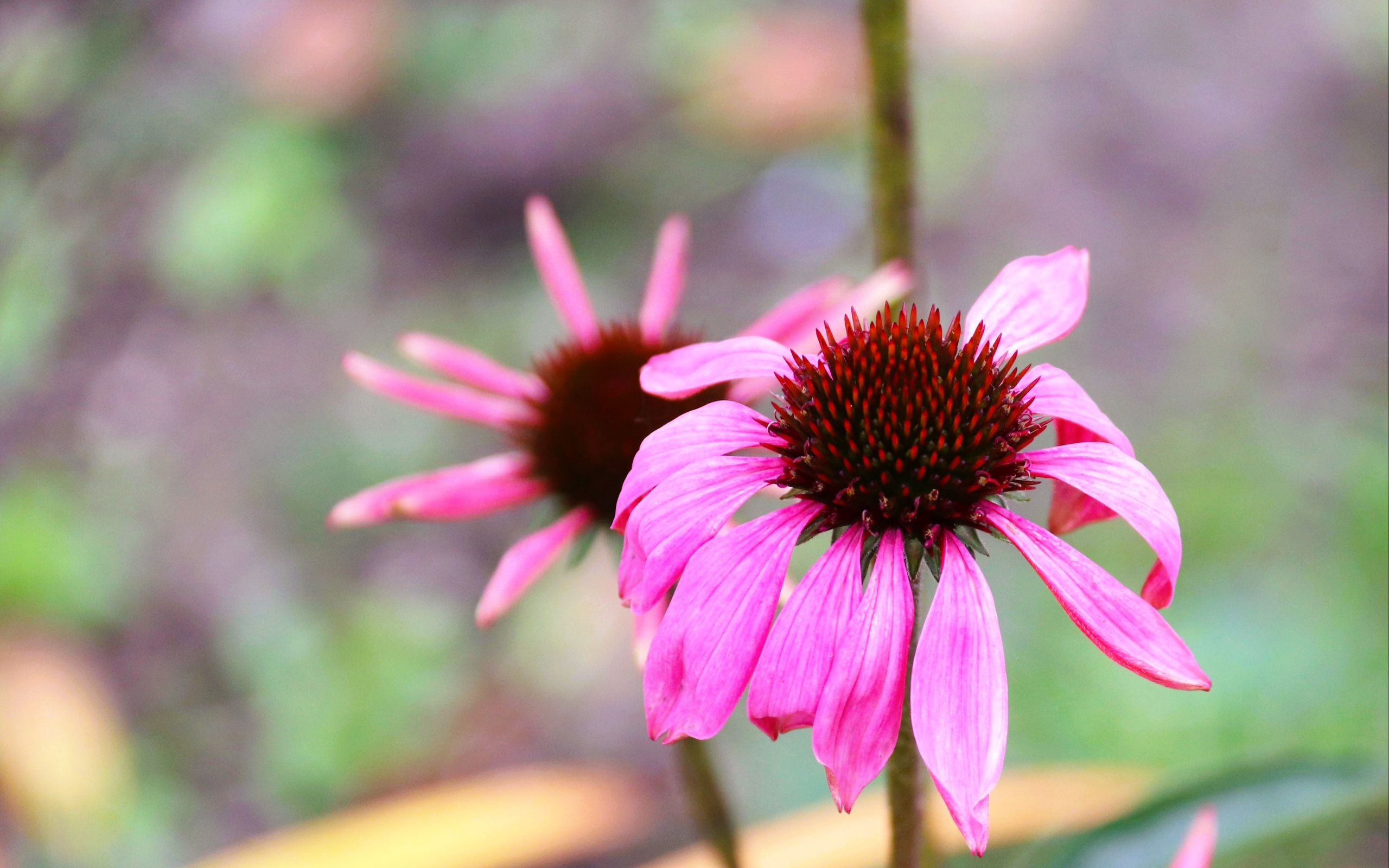 2560x1600 эхинацея, лепестки, цветок, блюр, макро, розовый обои 16:10