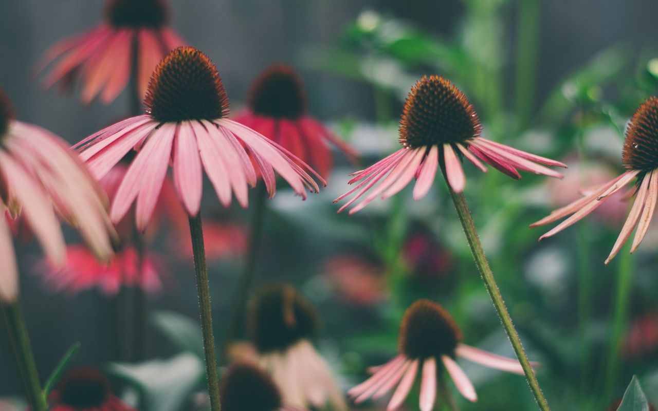 1280x800 эхинацея, цветы, лепестки, размытие обои 16:10