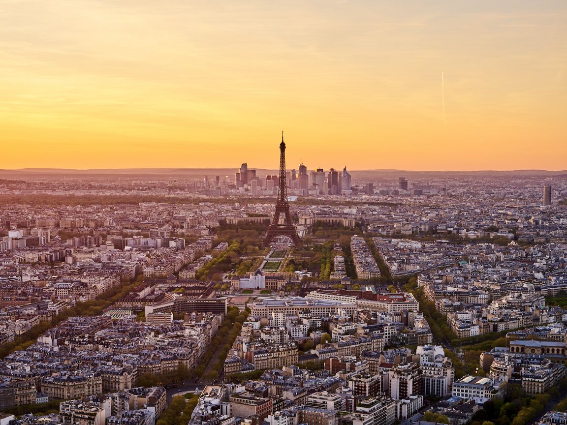 1152x864 эйфелева башня, город, закат, улицы, архитектура, париж, франция обои стандарт 4:3