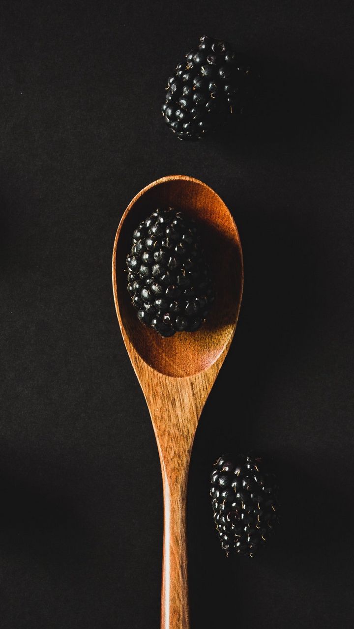 720x1280 ежевика, ягоды, ложка, черный, спелый обои samsung galaxy mini s3, s5, neo, alpha, sony xperia compact z1, z2, z3, asus zenfone