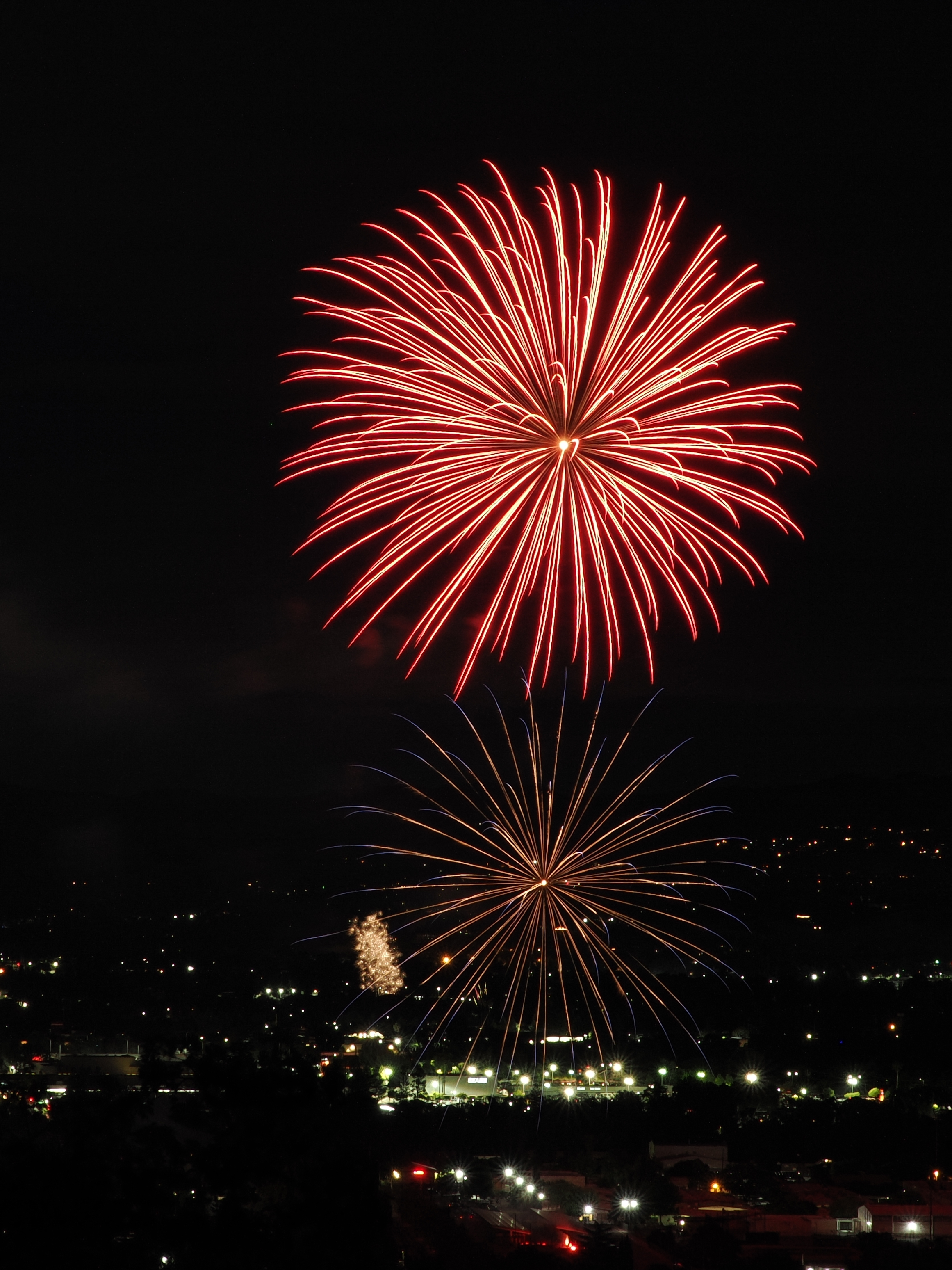 2322x3096 фейерверк, искры, ночь, огни, город обои