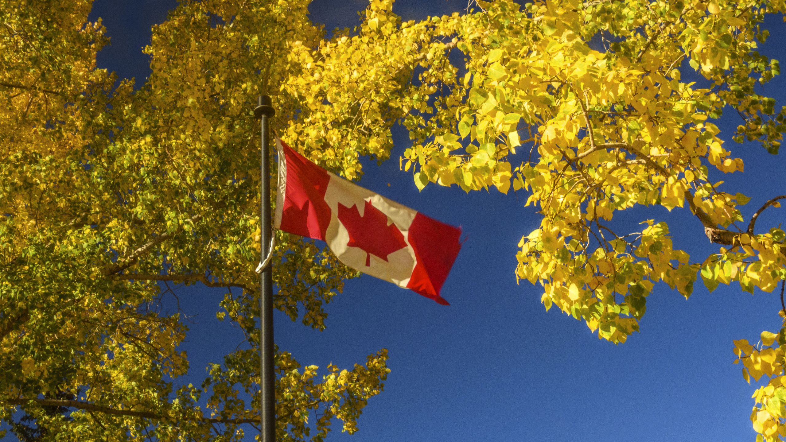 2560x1440 флаг, деревья, листья, канада обои 16:9