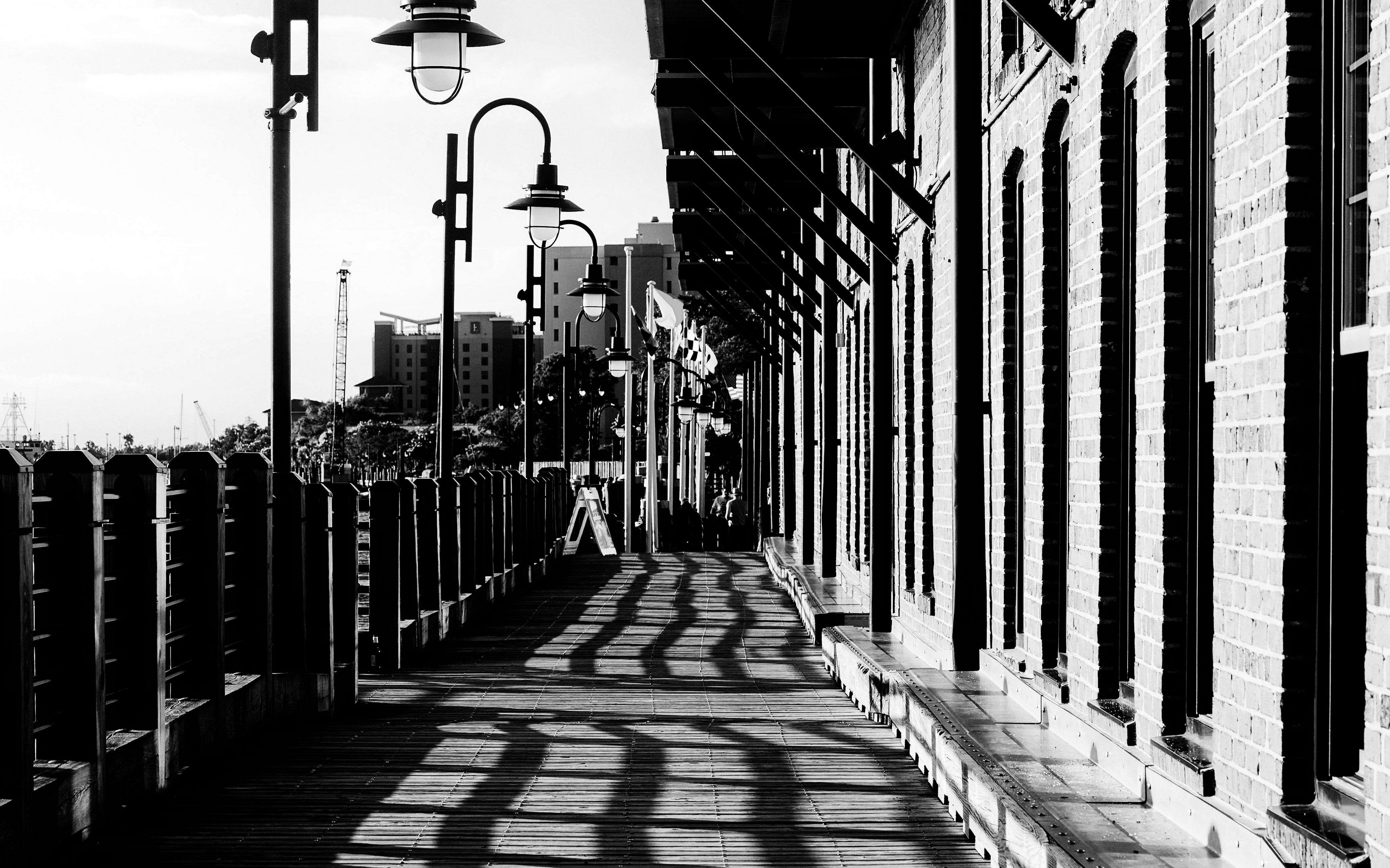 3840x2400 фонари, здание, фасад, тени, чб обои 4k ultra hd 16:10