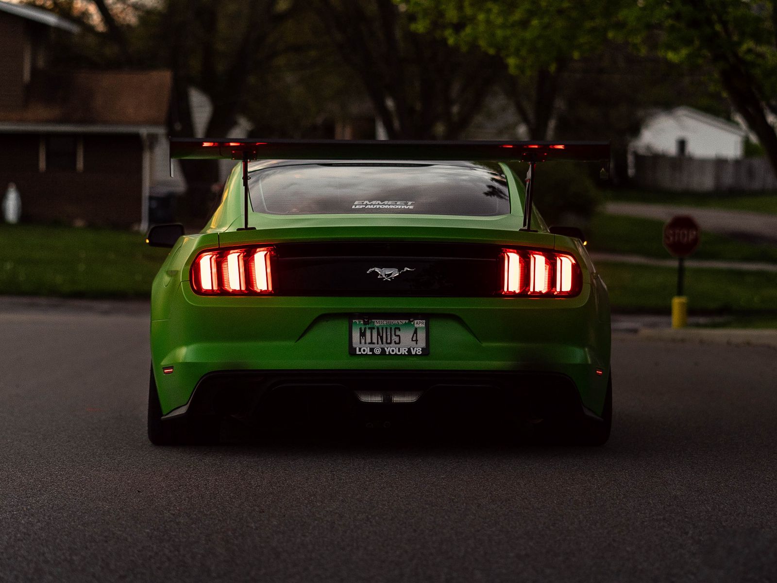 1600x1200 ford mustang, автомобиль, зеленый, вид сзади обои стандарт 4:3