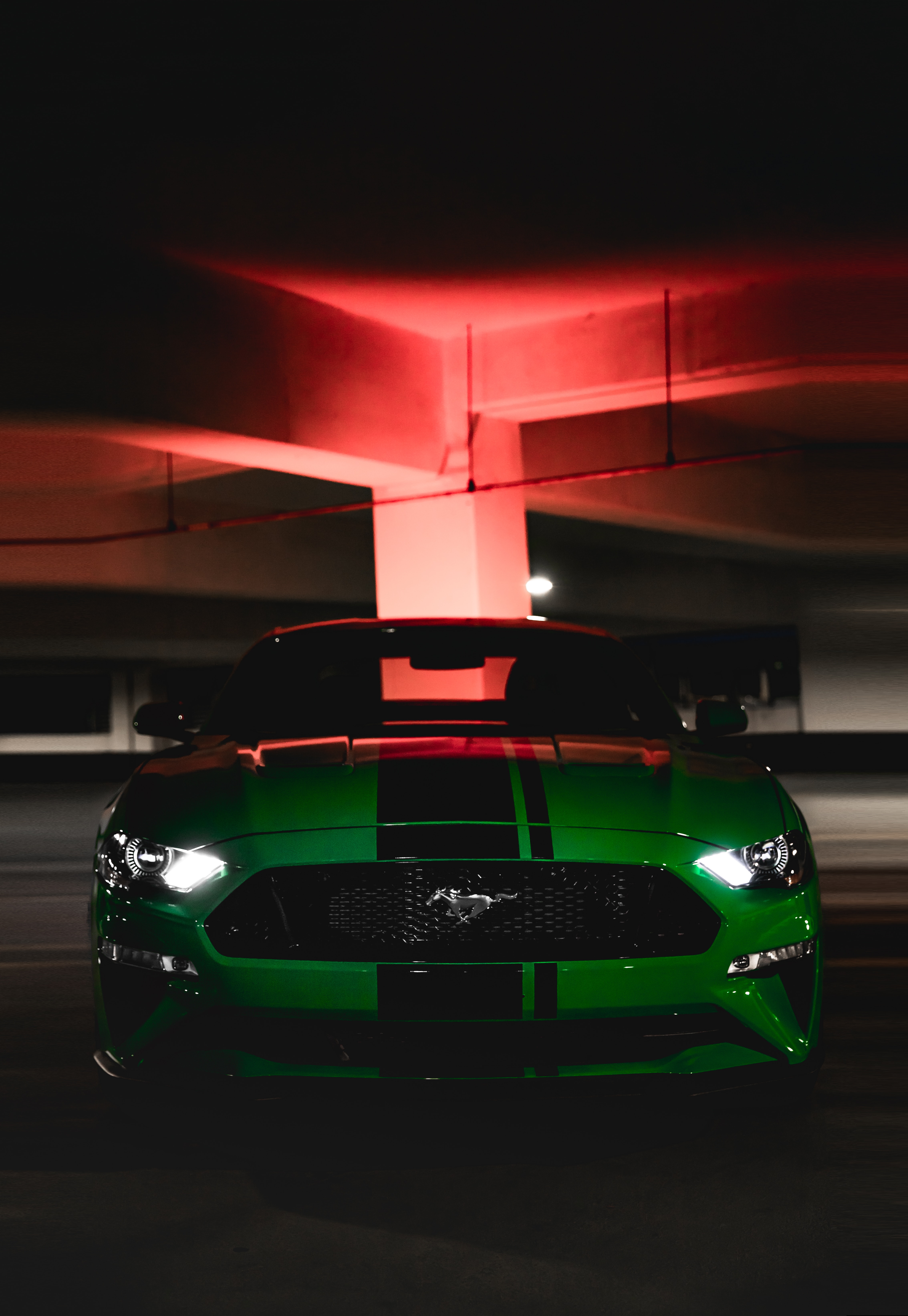 4533x6565 ford mustang, ford, машина, зеленый, темный, вид спереди обои