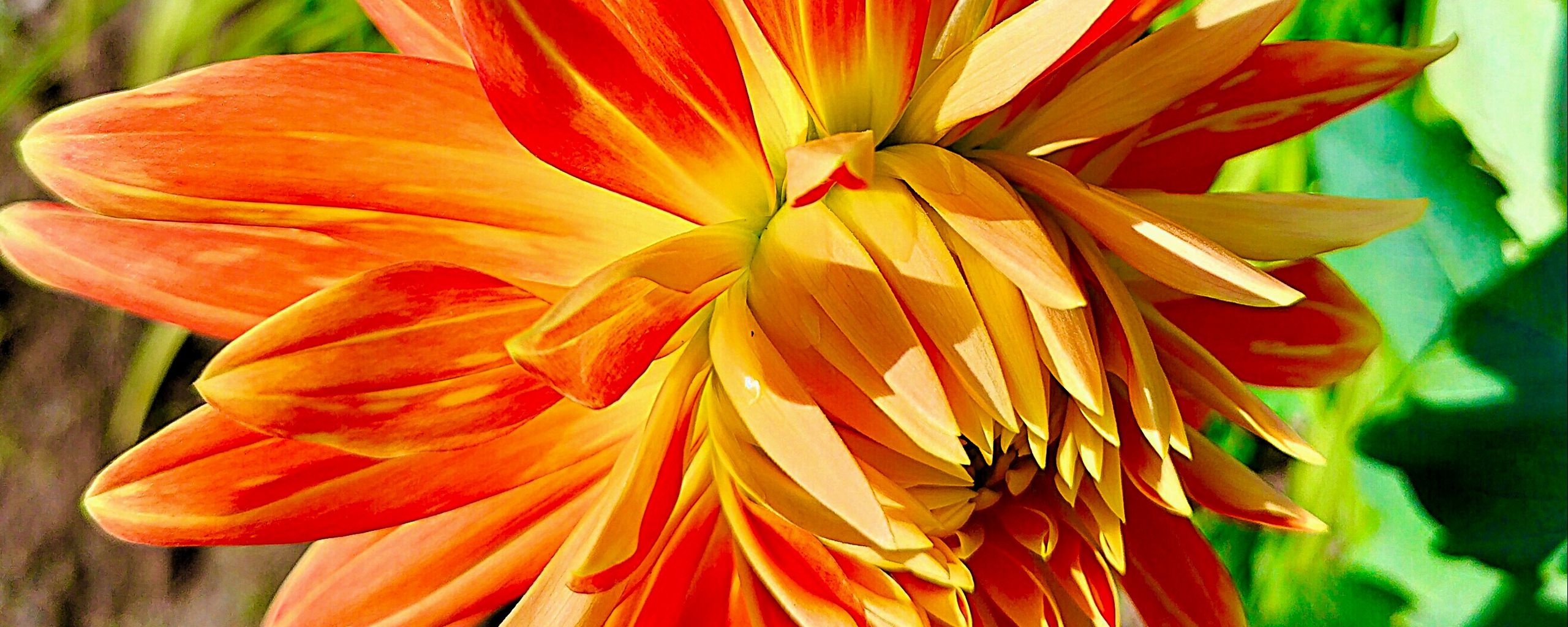 2560x1024 георгин, цветок, лепестки, макро, оранжевый обои ультраширокий монитор