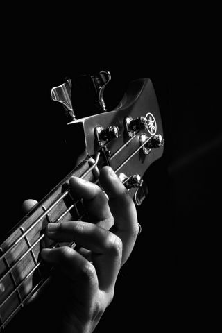 320x480 гитара, гриф, рука, чб, музыкальный инструмент обои samsung galaxy ace gt-s5830, sony xperia e, miro, htc wildfire s, c, lg optimus