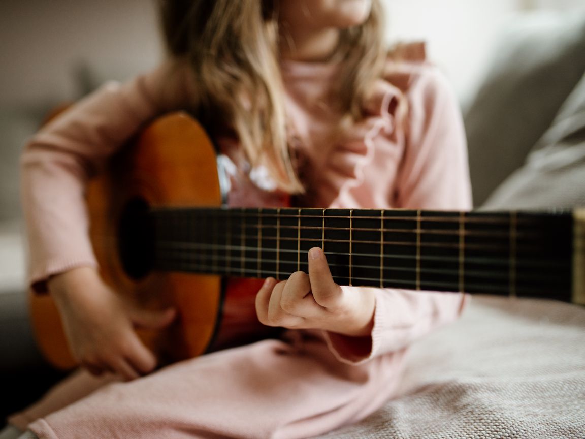 1152x864 гитара, струны, девочка, ребенок, рука, музыка обои стандарт 4:3