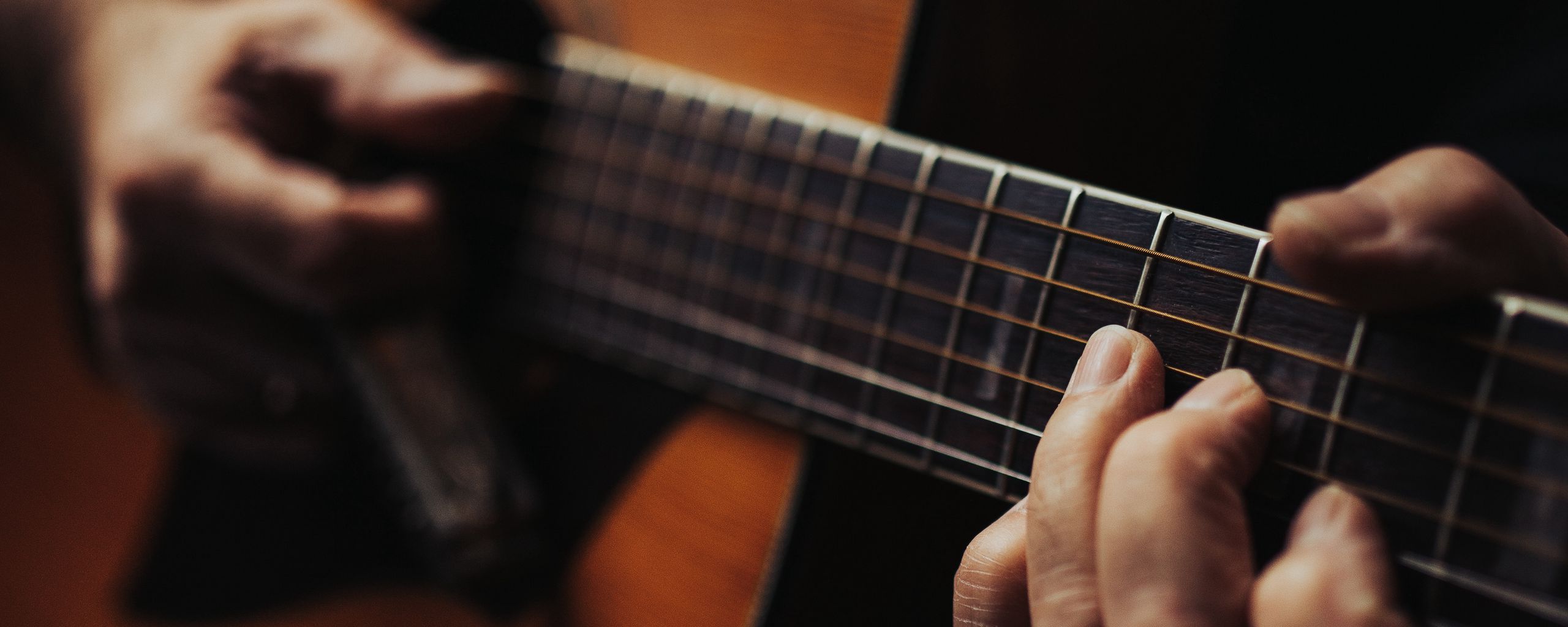 2560x1024 гитара, струны, гриф, макро, музыка, руки обои ультраширокий монитор