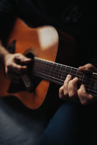 320x480 гитара, струны, гриф, макро, музыка, руки обои samsung galaxy ace gt-s5830, sony xperia e, miro, htc wildfire s, c, lg optimus