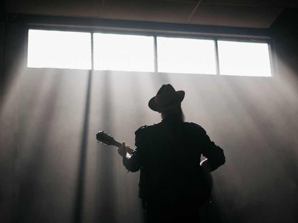 1024x768 гитарист, гитара, музыкант, музыкальный инструмент, лучи обои стандарт 4:3