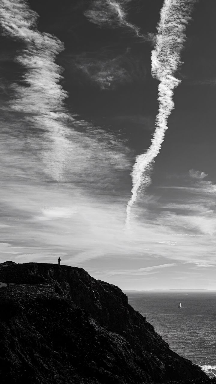 720x1280 гора, небо, море, чб обои samsung galaxy mini s3, s5, neo, alpha, sony xperia compact z1, z2, z3, asus zenfone