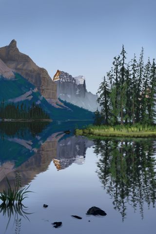 320x480 гора, озеро, деревья, пейзаж, природа, арт обои samsung galaxy ace gt-s5830, sony xperia e, miro, htc wildfire s, c, lg optimus